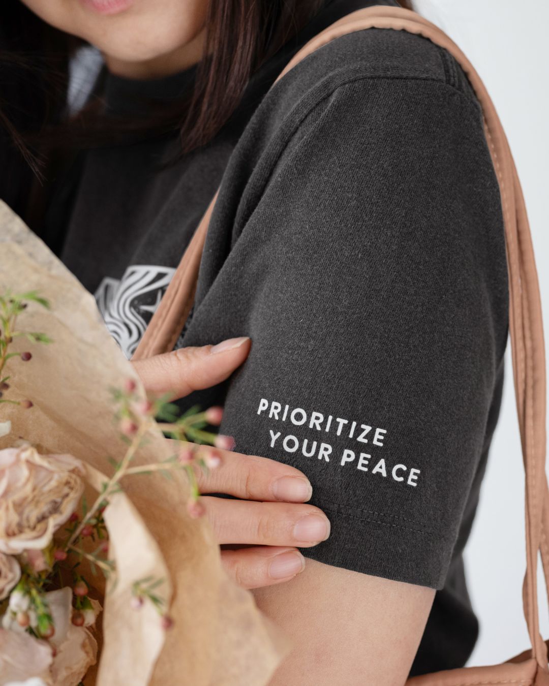 Prioritize Your Peace | Positive Vibes Tee with Sleeve Affirmation
