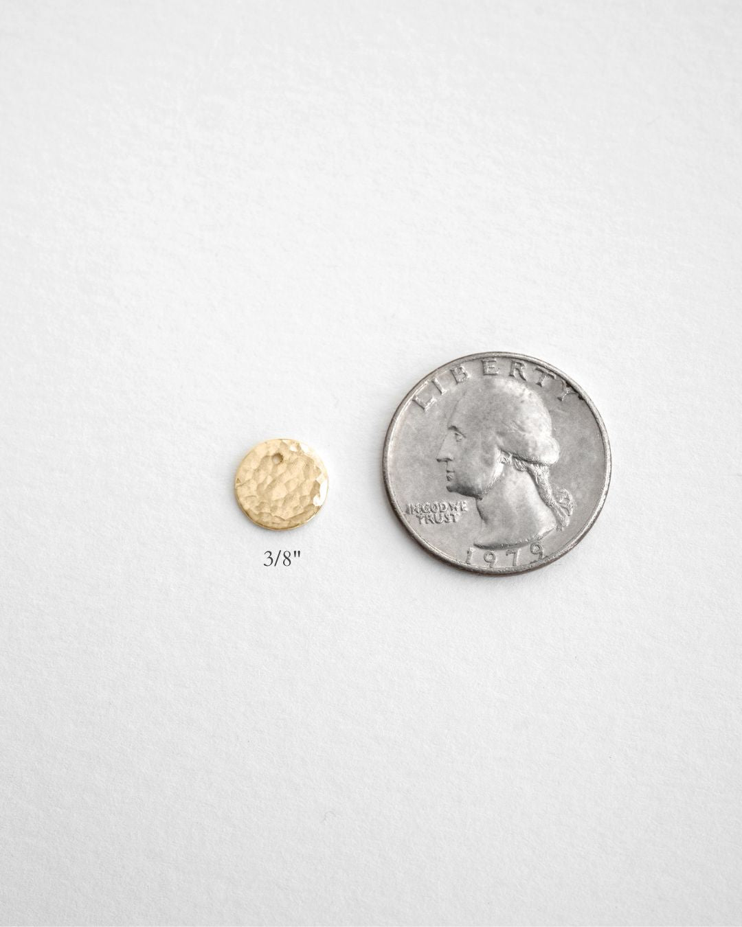 • Charm: two 3/8" (9mm) discs, hand-hammered front and engraving on the back
