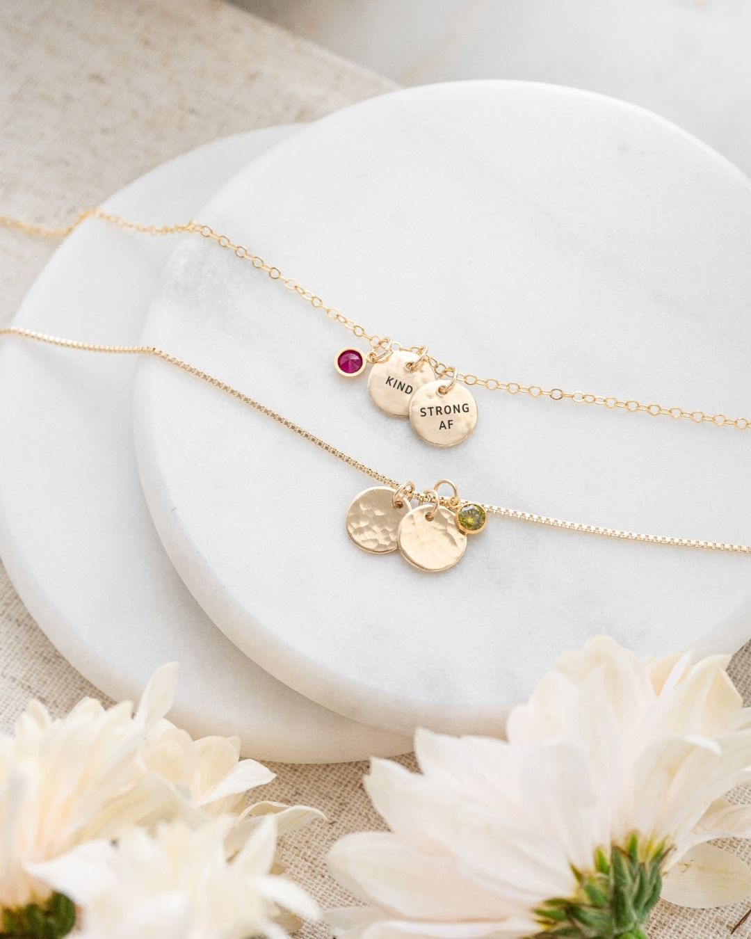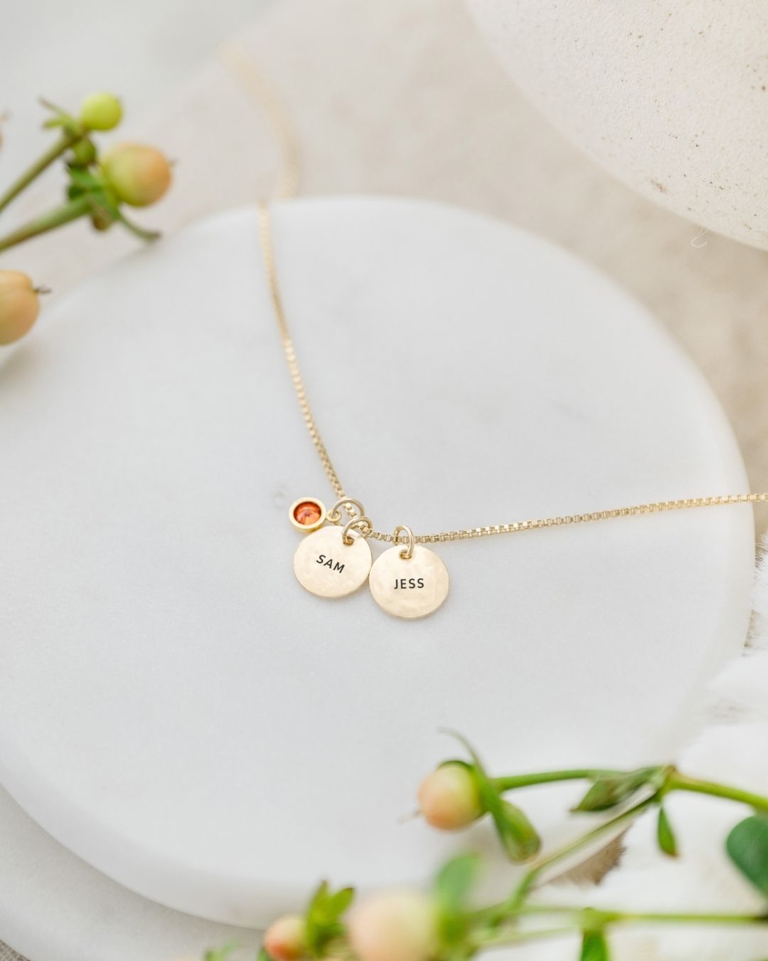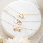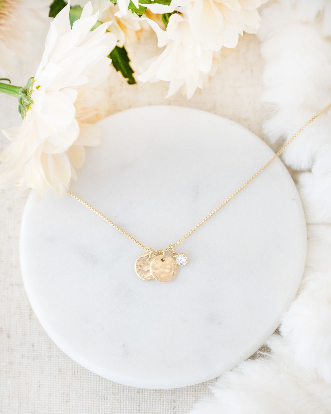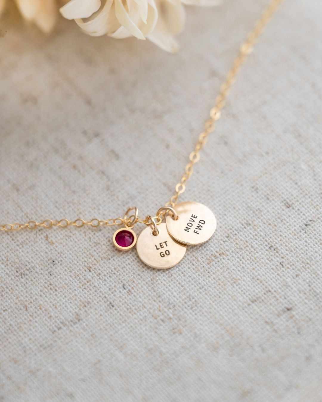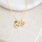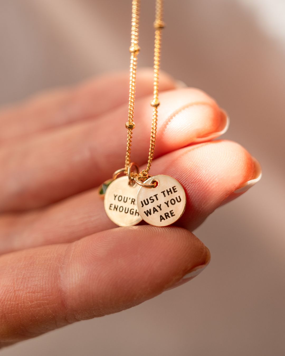 This necklace is a quiet, personal companion for your journey, carrying two hand-hammered Mini Luna coins, each engraved with a meaningful message—one for each side of your path.