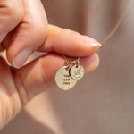 • Main charm: 1/2" (13mm) disc, hand-hammered front and engraving on the back