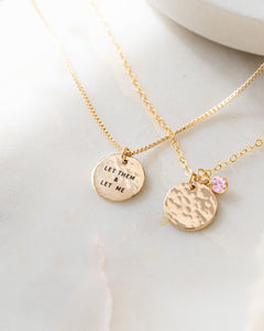 • Charm: 3/8" (9mm) disc, hand-hammered front and engraving on the back